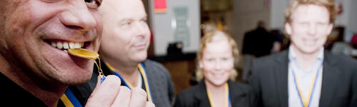 En efter en droppar Eriks dreamteam in. Mikael Magnusson, Roger Lövgren och Mikael Fredriksson busar med varandra och verkar laddade för en kul kväll på stan. Någon börjar redan nu prata om middagen på restaurang Grill och får något drömskt i ögonen. Mikael Fredriksson tar sin guldmedalj och biter i den på vant vinnarmanér. Sen släpper han greppet om guldet och konstaterar;