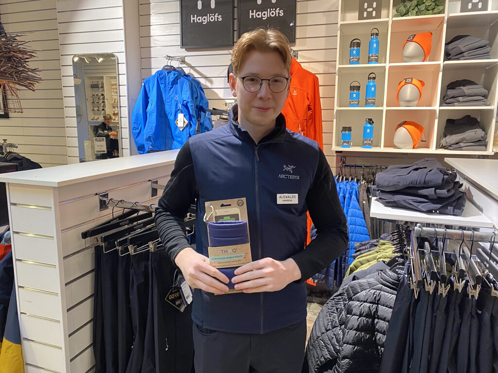”Det har rullat på bra i år. Hittills har det gått bra. Vi märker av kylan. Saker som gått extra mycket till julen: mängden av strumpor men också underställ och dunpåsen till sin smartphone. De har gått åt väldigt mycket. Många köper till hela släkten. Vi har köpt in väldigt många färger för att det ska passa alla. Den var kanske mest populär för några år sedan. En säsong hade vi siffror på 1 700 på en säsong. Fortfarande säljs det otroligt många. Vi skyltar med den lite extra precis vid ingången.”