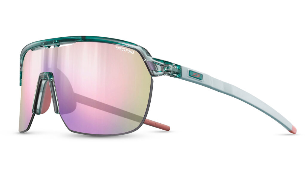 För den som vill gå ut lite hårdare finns det också glasögon som passar in. Frequency är en av de modellerna. Den ger ”optimalt skydd med hög stilfaktor” enligt Julbo. Den mellanstora modellen fungerar utmärkt på hoj och på löparbanan. Den stora linsen ger sikt i panoramaformat på en välventilerad båge med korta skalmar som både är flexibla och ”greppiga”.