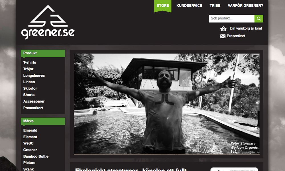 Greener.se heter en nystartad webshop där fokus ligger på ekologisk streetwear. Grundaren av sajten, Johan Norbäck, har mångårig butikserfarenhet från Intersports Karlstadsbutiker. Dessutom är han en hängiven skidåkare och mountainbikecyklist.