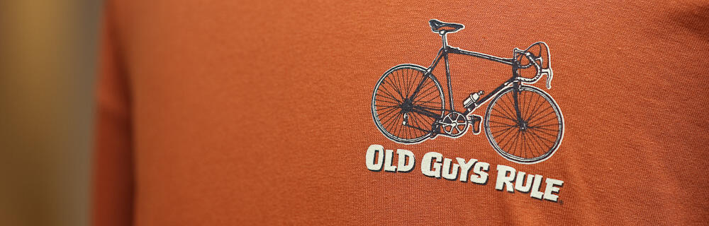 Old guys rule är befriande fritt från funktion och teknik. Med kaxiga tryck, sköna slogans och en klacksparksattityd till livet kommer det här att bli gubbarnas favoritmärke. Och er nästa bästsäljare.