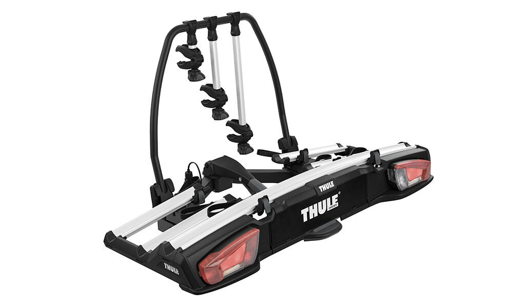 Thule VeloSpace XT är den mångsidiga cykelhållaren för alla typer av cyklar. Tack vare den höga lastkapaciteten går det även att transportera elcyklar och tunga mountainbikes.