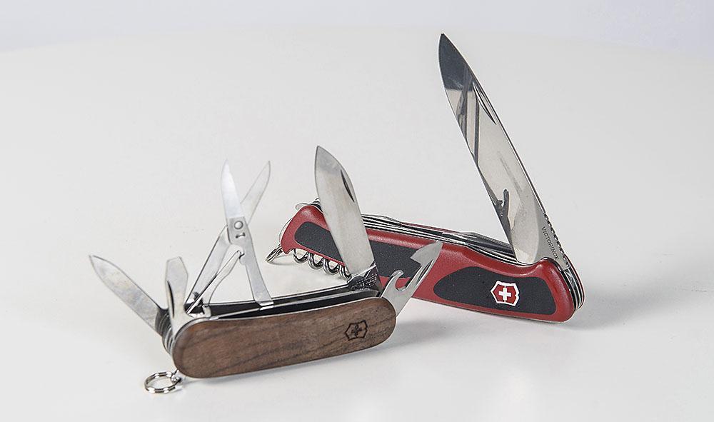 Självklart blir det en del snarlika modeller med vad Victorinox redan hade men det kommer också nya knivar och tekniska lösningar som Victorinox inte hade tidigare. Som att skruvmejseln låses vid belastning, att låset för att fälla upp stora knivar sitter i loggan, bättre saxar och knivar med träpaneler. Victorinox säljs av Roswi.