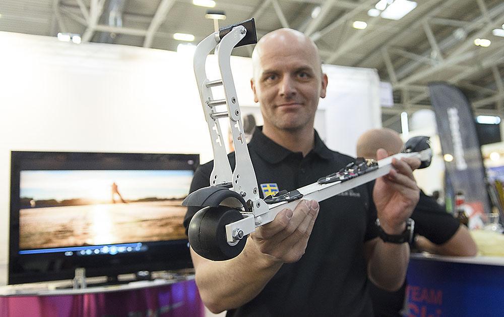 Vi har tidigare berättat om hur Elpex fått ny fart med nya ägare och på Ispo visade de upp sina nya podukter. En broms för rullskidor och rullskidor på is.