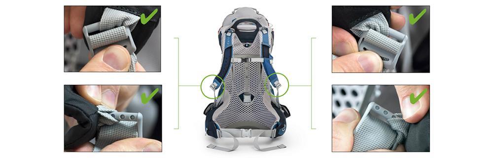 Osprey har upptäckt några felaktiga spännen i deras bärstolar i serien Poco AG. Det gäller bärstolar levererade efter 29 januari i år och det är enkelt att se ifall spännena ska bytas ut.
