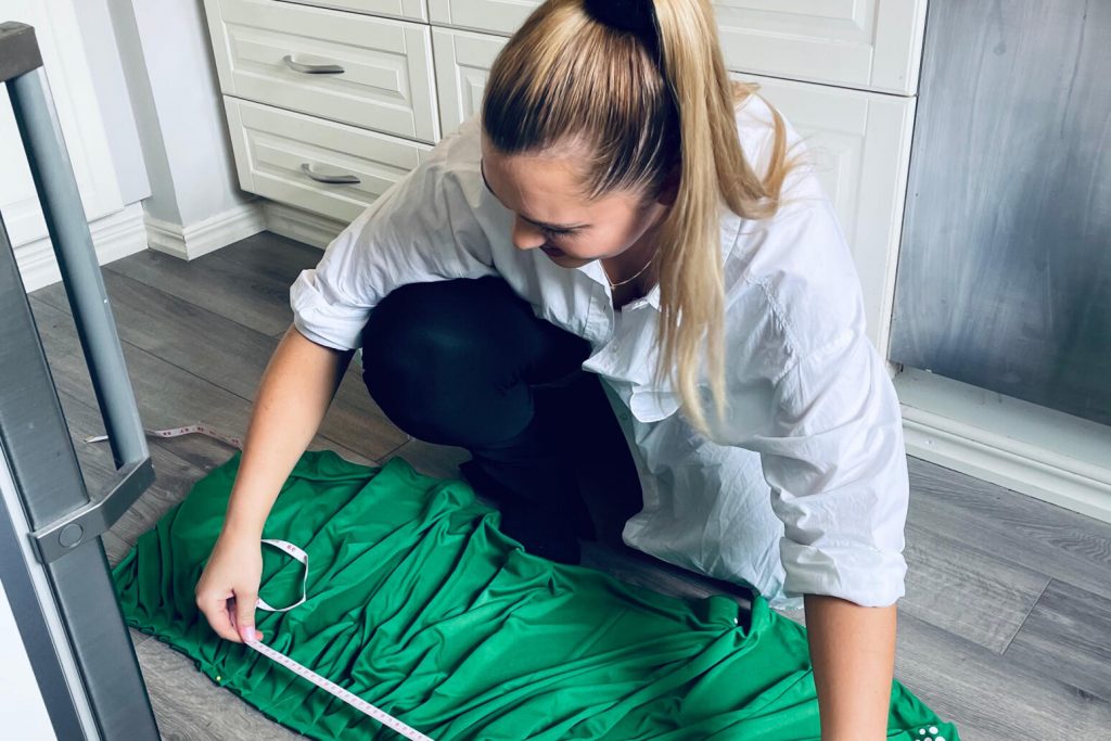 – Studenterna som läser till inköpare, säljare samt till kvalitets- och produktionsutvecklare hos oss har börjat arbeta med detta som en vanlig kursuppgift bland andra under sin utbildnign. Utgångsmaterialet är överblivna Hammarby-matchtröjor från 2019, klassiskt grönvitrandig på framsidan och med en grön baksida. Eleverna har sedan fritt fått ta fram olika idéer, utefter vad som ska designas och vilka tygdelar som passar, vem som är målgruppen och vart dessa produkter skulle kunna säljas. Därefter har de arbetat emd att ta fram prototyper för sina produkter, säger Camilla och förklarar att arbetet gett en stor bredd vad gäller slutprodukter.