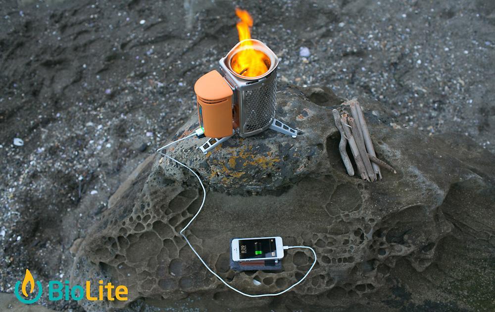 CampStove från BioLite är ett smart campingkök med USB-laddenhet. Att koka upp en halvliter vatten tar cirka 4 minuter. Värmen från den bärbara eldstaden alstrar sedan elektricitet som driver en fläkt som ytterligare förbättrar förbränningen. Överskottselektriciteten skickas till USB-porten, och kan utnyttjas till att ladda upp elektronisk utrustning (kamera, lampa eller mobiltelefon).