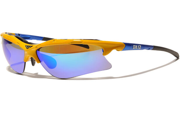 Gul båge, blå skalmar och blå glas! Inte konstigt att Svenska längdlandslaget använder de här glasögonen. Blitz Active Eyewear Pursuit XT är svenskdesignade sportglasögon för längdåkare.