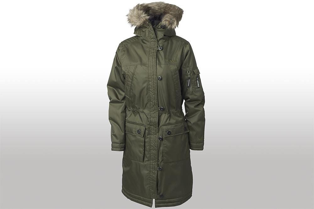 Även Tenson är inne på retrolinjen med sin damjacka Sigrid. Modellen är en vidareutveckling av Tensons klassiska Himalaya-jacka. Den har ett MPC-membran i yttermaterialet vilket gör den både vind och vattentät. Jackan har justerbar midja för bättre passform och en stor huva med löstagbar fuskpälskrage.